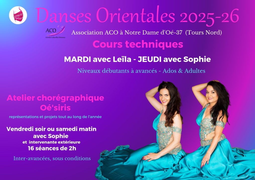 Suivez toute notre actualité sur notre page Facebook « Danse Orientales ACO Notre Dame d’Oé– proche Tours » ainsi que sur notre profil Instagram » danseorientaleaco ».