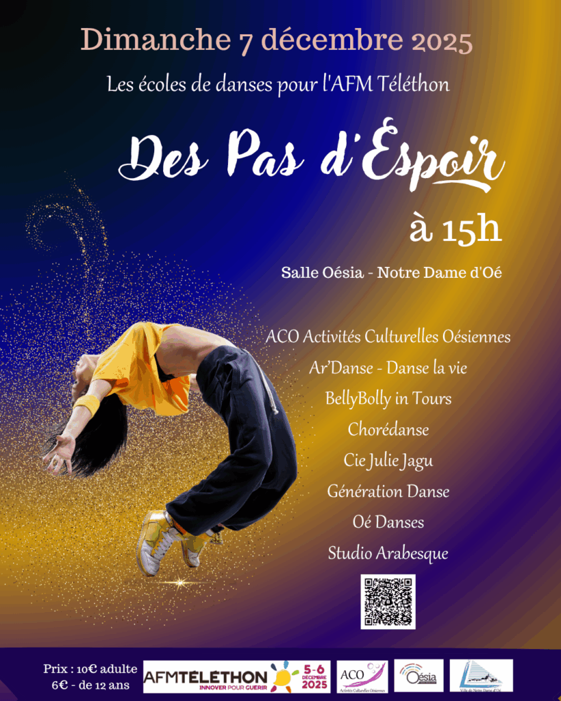 Le spectacle annuel “DES PAS D’ESPOIR” au profit de l’AFM Téléthon aura lieu dimanche 7 décembre 2025 à OESIA, à 15h.